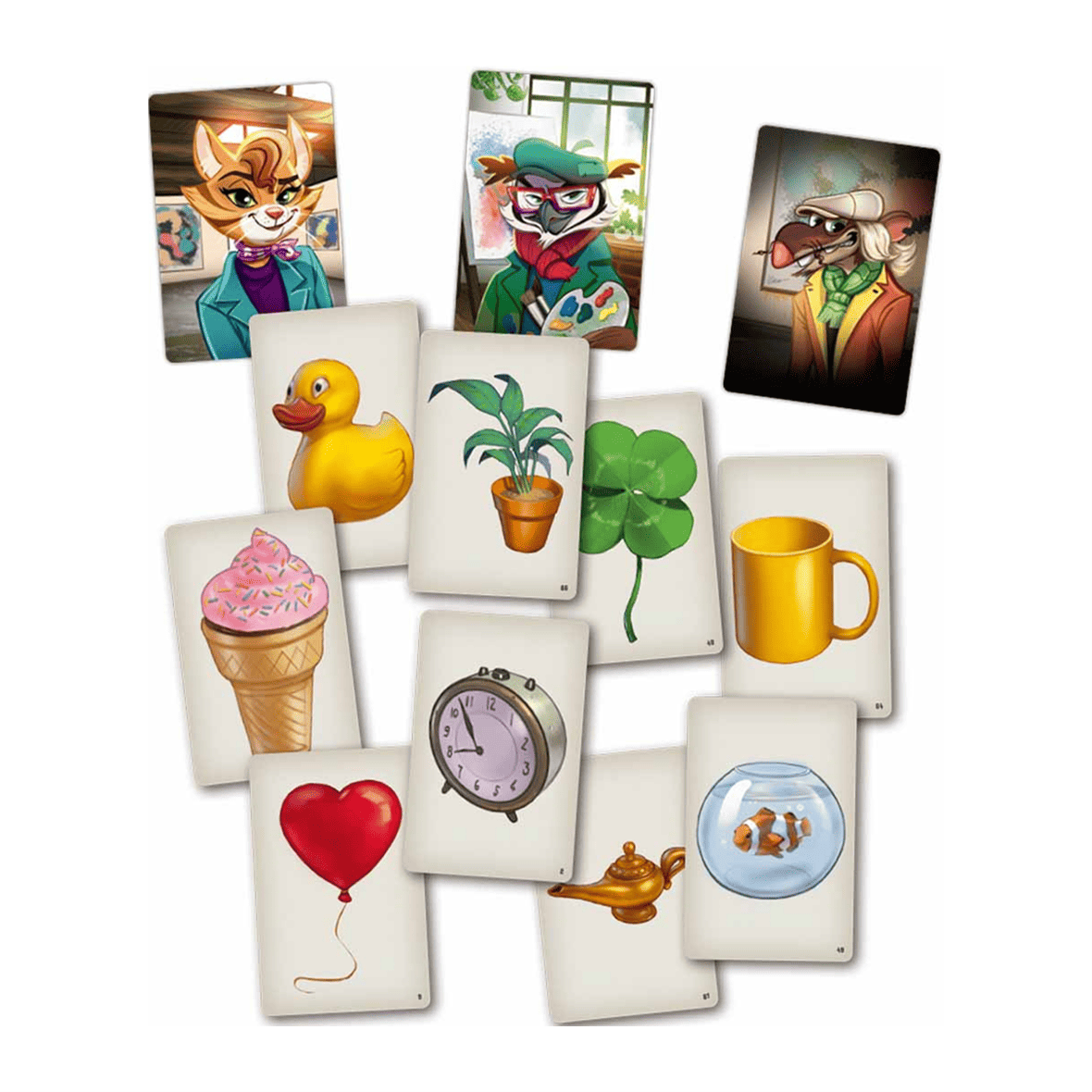 Para facilitar la tarea a los jugadores hay cinco comodines que se pueden usar una vez cada uno durante la partida. Funcionan como habilidades especiales, que permiten sustituir las cartas de temática, consultar sobre un cuadro, añadir menos falsificaciones o renovar las cartas. Y si el grupo de juego quiere adaptar la experiencia, el reglamento ofrece distintas variantes para ajustar la dificultad de las partidas. ¡Belratti se adapta a cualquier tipo de partida!