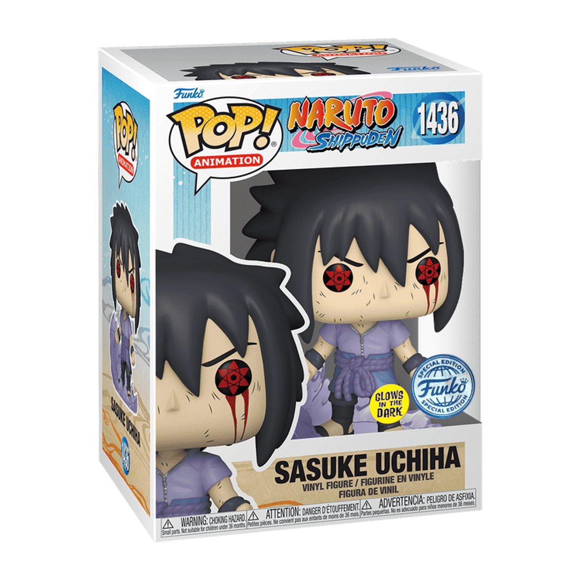 Como uno de los últimos miembros sobrevivientes del clan Uchiha, Sasuke hace su aparición como un Pop Animation Exclusivo Funko Shop para vengar a su clan.